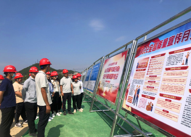 分公司牢固樹立質量第一意識,不斷提高質量效益。“質量月”動員會上,分公司質量管理領頭人進行倡議發言,旨在“榜樣”的引領帶動下,廣泛推行全員質量管理,不斷提升質量水平?;顒娱_展過程中,施工現場懸掛“質量月”宣傳條幅42條、質量展板8塊、宣傳海報8張,營造出“人人關心質量、重視質量、追求質量、守護質量”的共治共享氛圍。