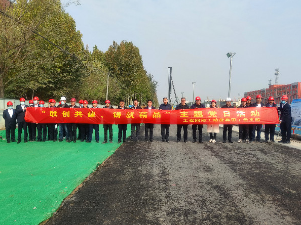 為慶祝黨二十大的勝利召開,充分發(fā)揮黨員先鋒模范作用,加快工程建設(shè),10月29日,建設(shè)集團(tuán)工程四部(動(dòng)能集團(tuán))黨支部聯(lián)合黃河大道二標(biāo)段各參建單位以“聯(lián)創(chuàng)共建、鑄就精品”為主題,舉辦主題黨日活動(dòng)。施工、全詢、設(shè)計(jì)等參建單位黨支部黨員參加了此次活動(dòng)。 活動(dòng)第一階段首先觀摩了黃河大道一期工程項(xiàng)目施工二標(biāo)段現(xiàn)場(chǎng)施工進(jìn)展情況,各參建方現(xiàn)場(chǎng)交流了觀摩心得。 活動(dòng)第二階段在崔寨指揮部中心會(huì)議室,全體黨員統(tǒng)一著裝,佩戴黨員徽章,認(rèn)真學(xué)習(xí)了習(xí)近平總書記在黨的二十大上作的報(bào)告。大家表示,偉大建黨精神是中國共產(chǎn)黨的精神之源,我們將始終堅(jiān)持以習(xí)近平新時(shí)代中國特色社會(huì)主義思想武裝頭腦、指導(dǎo)實(shí)踐、推動(dòng)工作,永葆