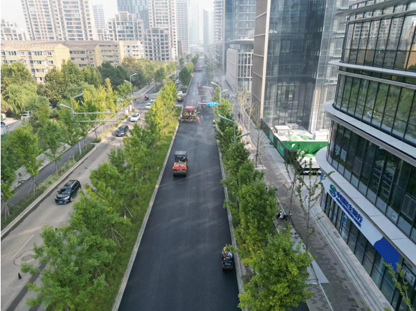 10月24日,隨著最后一車瀝青混合料碾壓完畢,濟南市中央商務區瀝青面層一期快車道瀝青上面層攤鋪工作順利完成。 濟南中央商務區瀝青面層一期包含新濼大街、茂嶺二號路、茂嶺三號路、規劃二號路、規劃一號路、天辰路共6條地面道路,道路總長度8377米,面積134401平方,瀝青總重13440噸。 濟南中央商務區瀝青面層一期項目中標內容只包含瀝青上面層攤鋪,基層由其他單位施工,項目部在進場之初就嚴格把控基層施工質量,積極配合相關單位處理基層病害,確保瀝青面層成形質量。在施工過程中道路兩側地塊施工項目及居民眾多,項目部前期縝密策劃交通組織方案,提前發布施工公告通知周邊居民及單位,將交通擁堵降至最