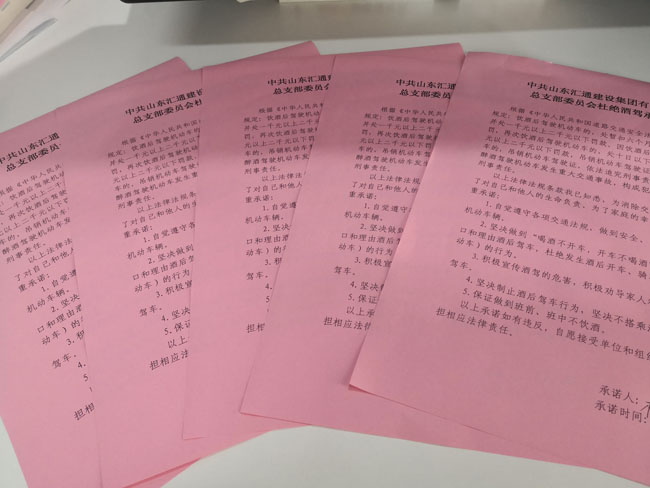 為進(jìn)一步提高分公司全體黨員干部自覺(jué)遵守黨的紀(jì)律和國(guó)家法律法規(guī)意識(shí),有效遏制酒后駕車(chē)問(wèn)題發(fā)生,近日,匯通公司黨總支組織簽訂《杜絕酒駕承諾書(shū)》。